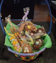 Brightly colored Easter baskets await your choice of goodies! Choose their favorites and we'll wrap up your basket in cellophane and ribbon with grass for the cost of the goodies plus $5.00.