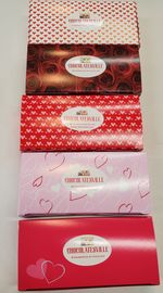 Four solid hearts wrapped in Valentine colored foil. 2 oz.